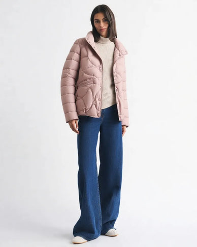 The Gusky Bella Puff is a lightweight, fashion-forward short puffer designed for modern winter styling. Its quilted bubble texture adds dimension and a refined Y2K touch, while the single-breasted button closure brings a structured, feminine silhouette. Compact, warm, and effortlessly chic, it transitions seamlessly from casual outfits to trend-driven looks. A versatile winter staple crafted for comfort with a stylish edge.