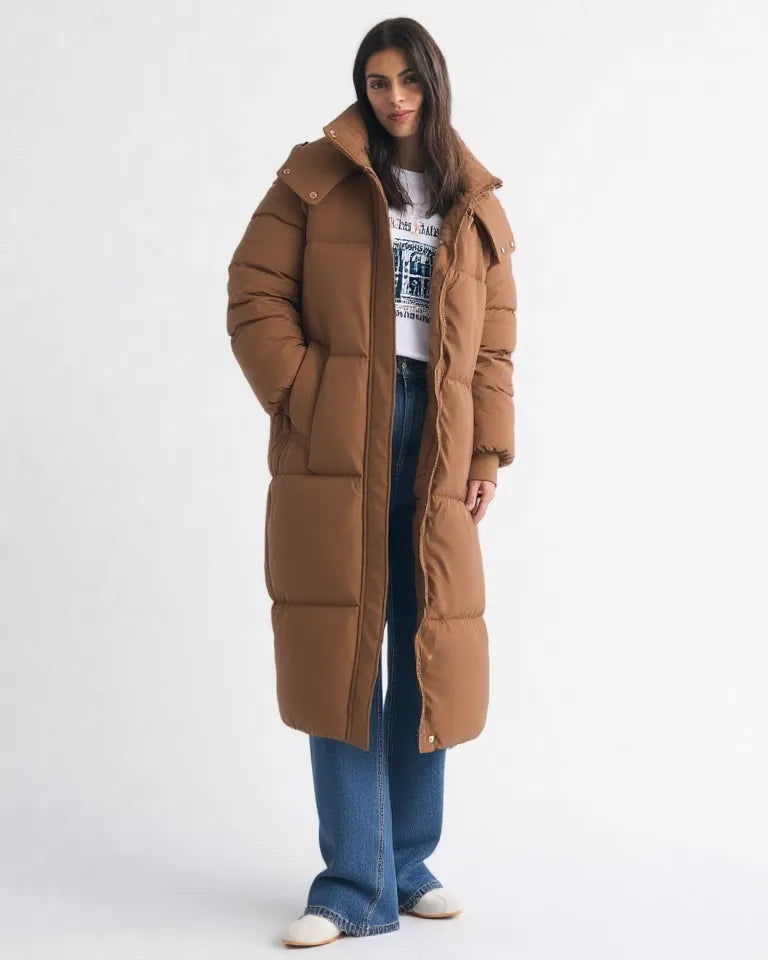 The Gusky Elowen Puff delivers a blend of refined warmth and everyday comfort designed for deep-winter conditions. Its long silhouette offers full-body insulation while maintaining a clean, streamlined shape that flatters every look. The padded hood enhances protection against wind and snow, and the soft-touch shell creates a smooth, premium feel. A versatile winter coat made for effortless elegance in cold weather.