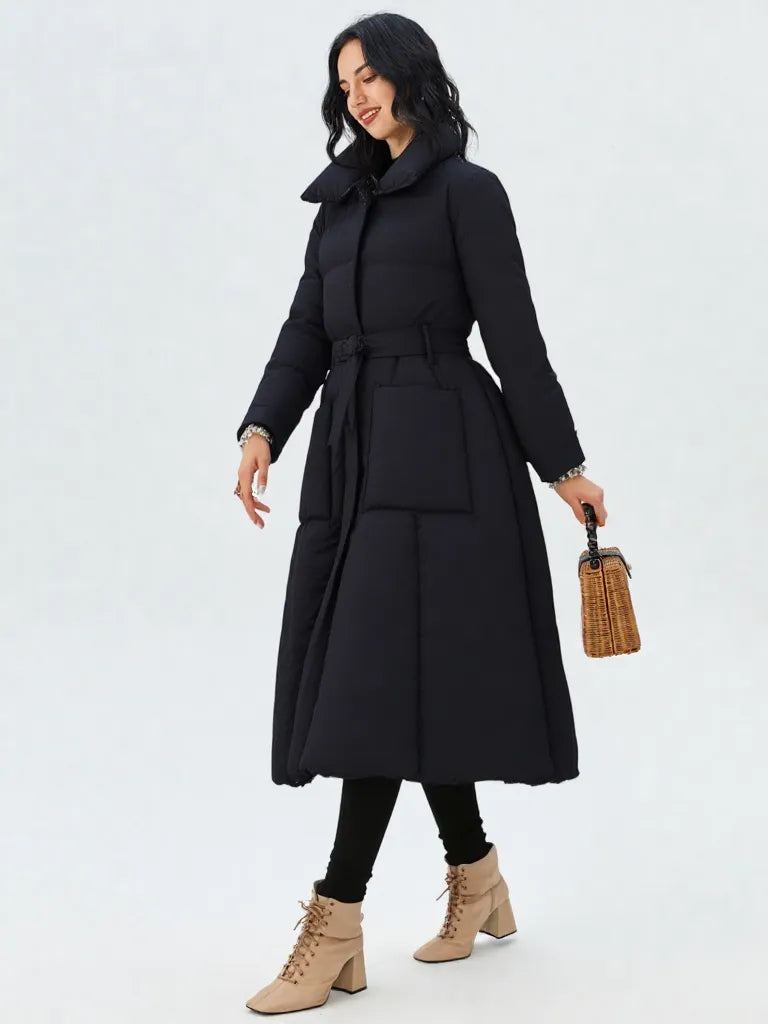 The Gusky Marceline Puff is a refined long puffer coat designed for cold-weather elegance. Its extended silhouette delivers a naturally elongated and flattering shape, while the quilted cotton padding provides dependable winter warmth without unnecessary bulk. The single-breasted closure creates a clean, structured aesthetic, making this piece ideal for both casual and elevated winter outfits. A premium cold-season essential crafted for comfort, sophistication, and everyday versatility.